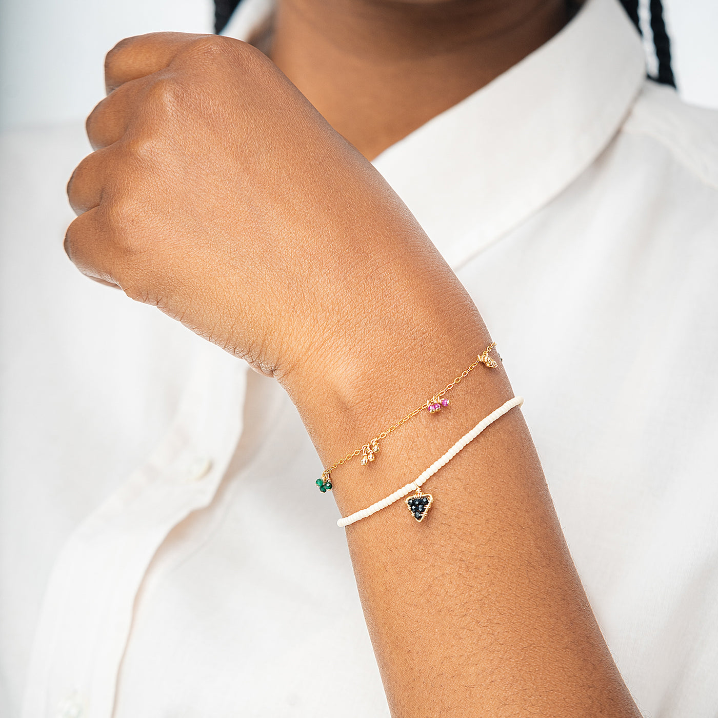 Beaded Ruby Arch, Tanzanite & Sapphire Triangle Necklace