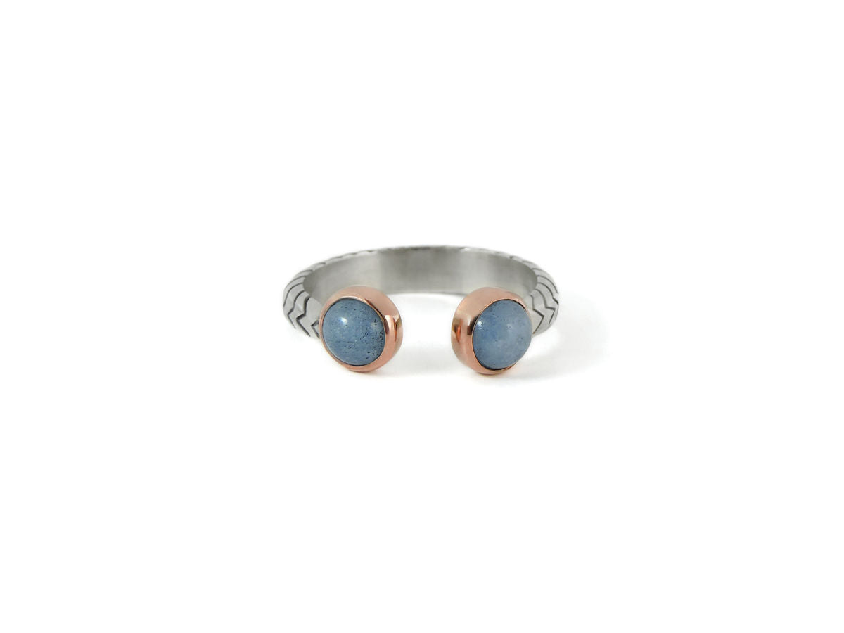 Aquamarine Pair, Sterling Silver & 10K Gold Reveal Ring