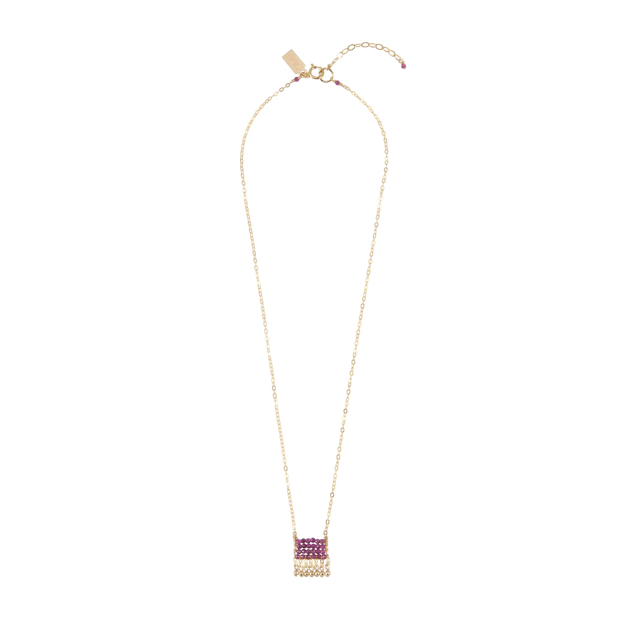 Beaded Ruby Arch, Tanzanite & Sapphire Triangle Necklace