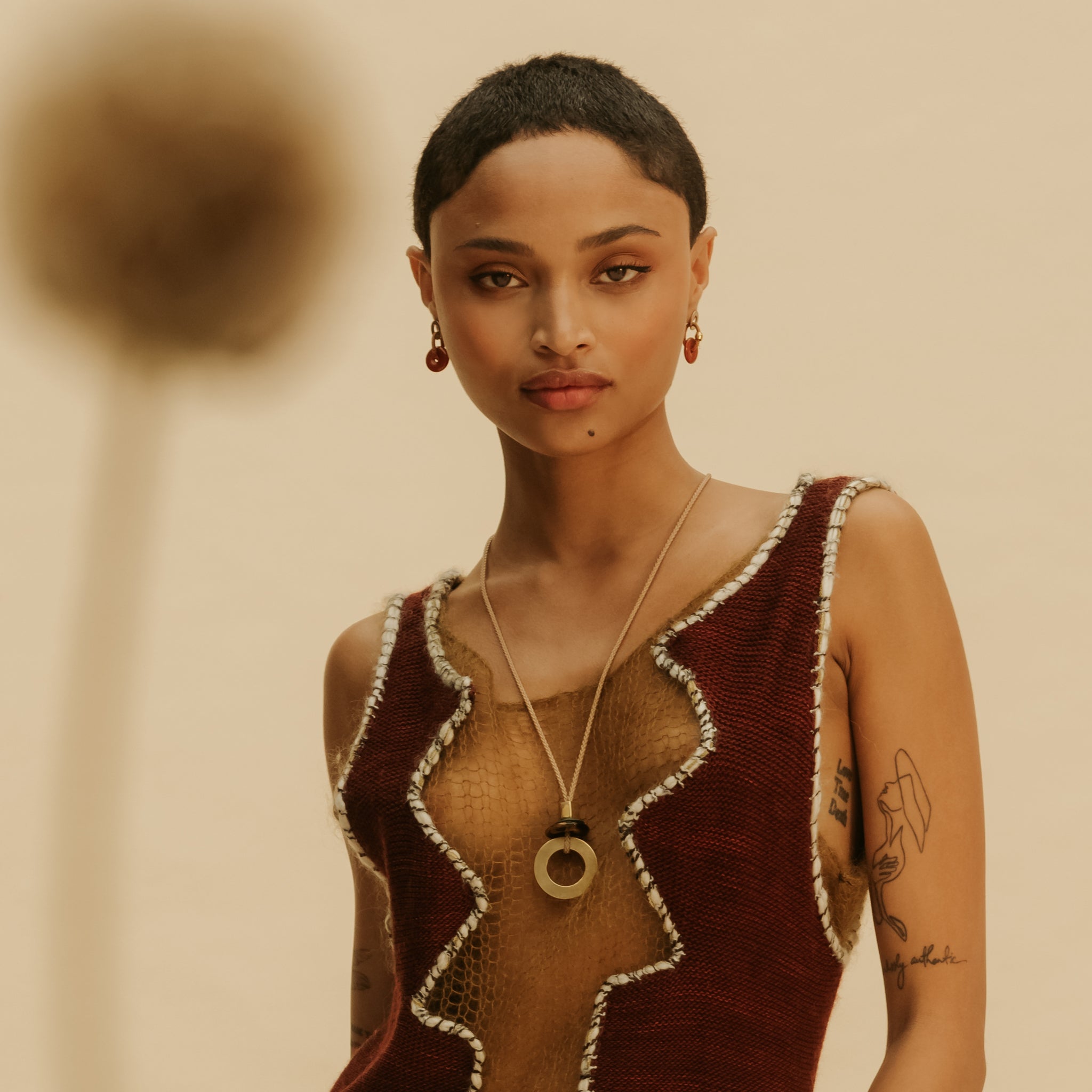 Noor Beige, Brass & Tigers Eye Pendant Necklace