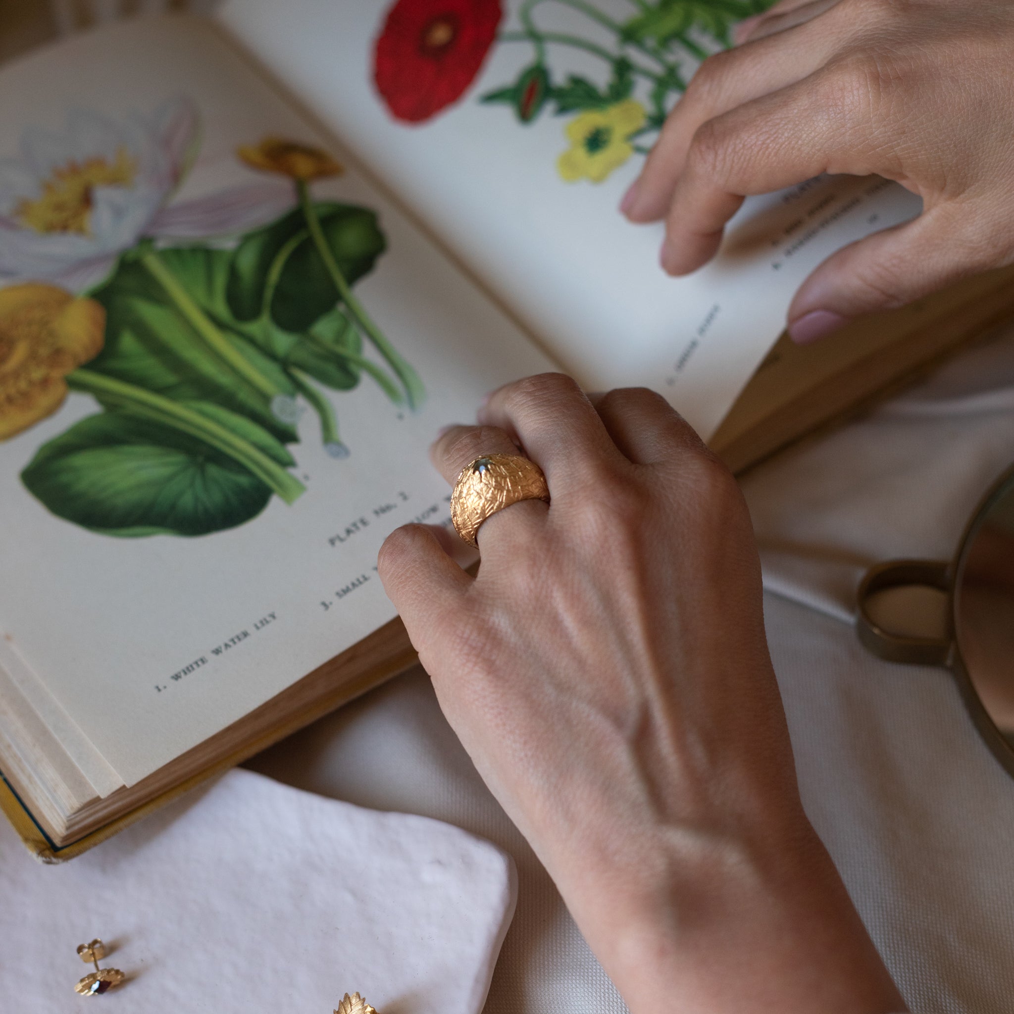 Handcrafted in Portugal using recycled metals and natural stones, these jewelry pieces are made with the same care and precision as fine art. Every design is created by a small team led by a sculptor-turned-jeweler.