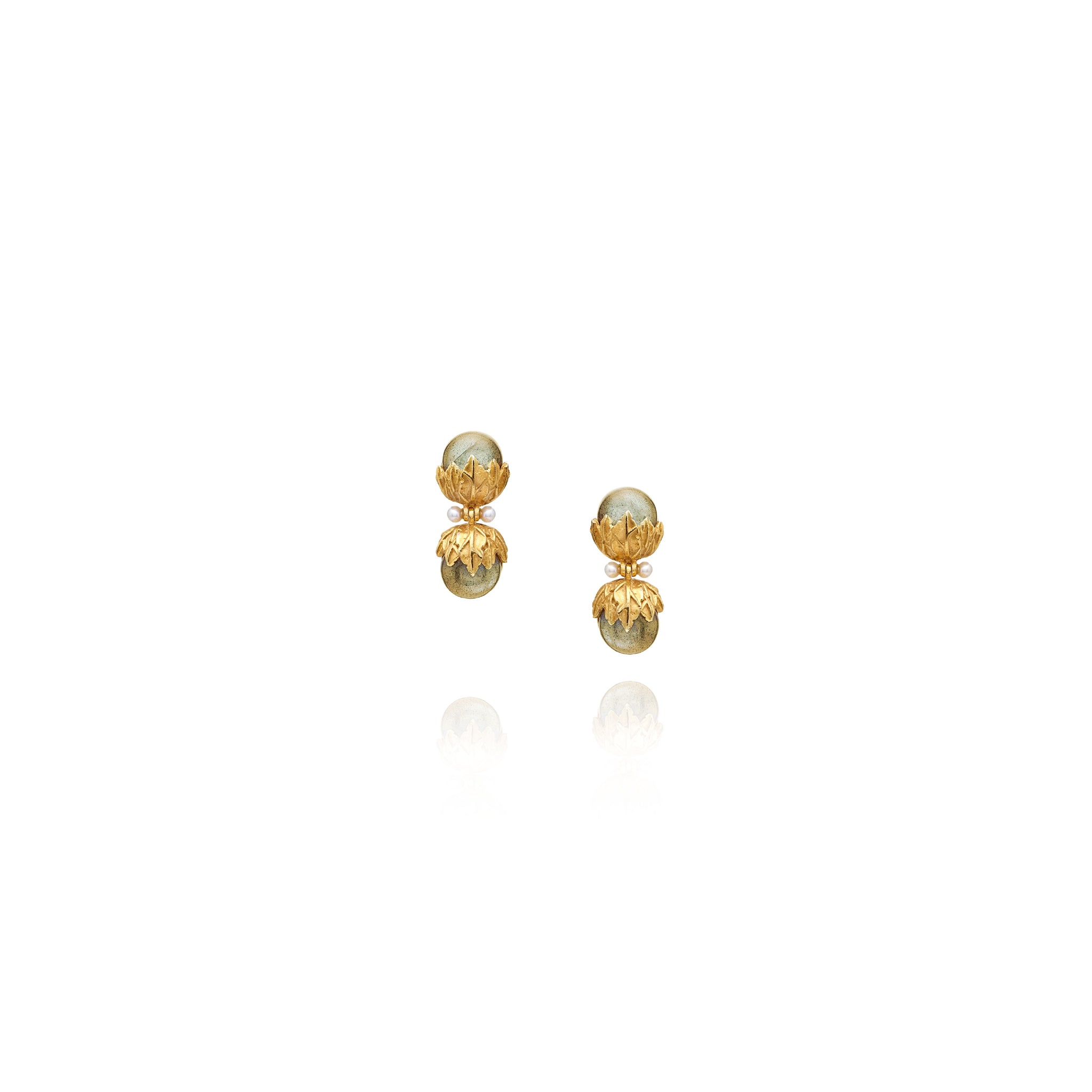 Blue & Green Labradorite & Pearl Hinged Earrings